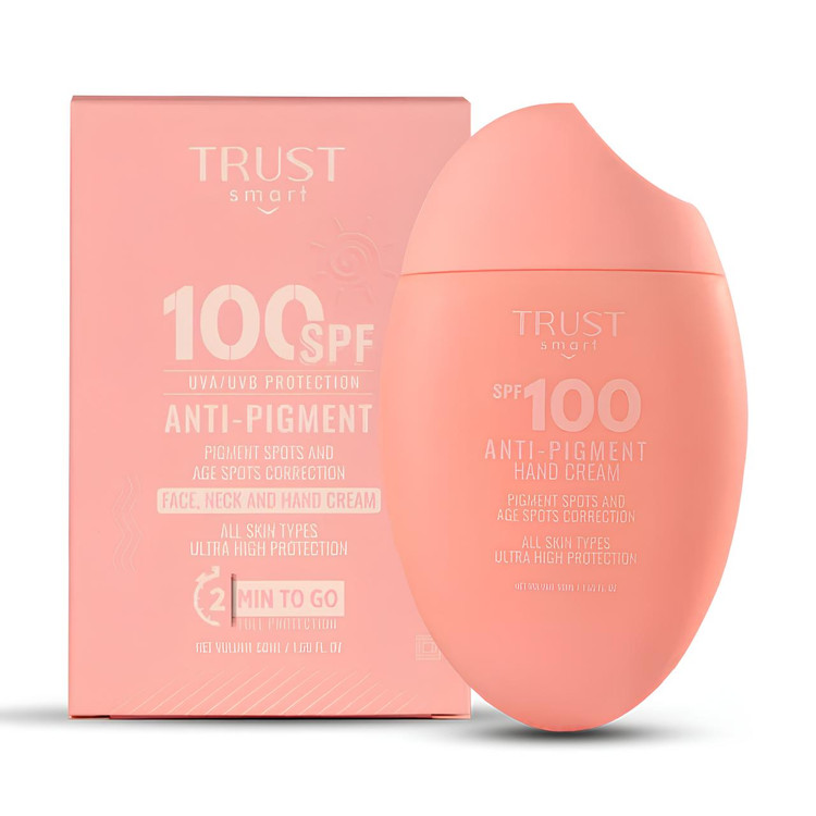 کرم ضد آفتاب تراست اسمارت با داشتن SPF 100 محصولی منحصر به فرد با طیف گسترده ای از فیلترهای UV و اکتیوهای تخصصی است که مراقبت کاملی از پوست در برابر پرتوهای UV دارد. فرمولاسیون این محصول به گونهای عمل میکند که پس از مصرف محصول بر روی پوست، رنگی سفید مایل به بنفش ایجاد میشود به این معنا که نسبت جذب پرتوهای UV به انعکاس و پخش این پرتوها با ایجاد ظاهری بنفش رنگ بعد از مصرف بر روی پوست، نشان دهنده بیشترین میزان مراقبت از پوست در برابر پرتوهای مضر فرابنفش است.
